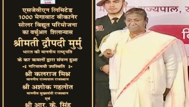 राष्ट्रपति द्रौपदी मुर्मू ने बीकानेर सौर ऊर्जा परियोजना की जयपुर में एसजेवीएन रखी आधारशिला* January 4, 2023January 4, 2023hindiragazone राष्ट्रपति द्रौपदी मुर्मू ने बीकानेर सौर ऊर्जा परियोजना की जयपुर में एसजेवीएन रखी आधारशिला* मोहाली 03 जनवरी 2023 ( ) राष्ट्रपति द्रौपदी मुर्मू [...]