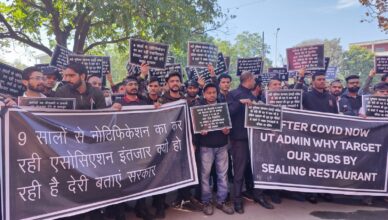 चंडीगढ़ के लगभग 1000 रेस्टोरेंट व बार कर्मियों ने माथे पर काली पट्टियां व काले कपड़े पहन कर रोष प्रदर्शन व्यक्त किया February 2, 2023February 2, 2023hindiragazone रागा न्यूज़, चंडीगढ़। अपनी लंबे समय से लंबित मांगों को लेकर चंडीगढ़ बार एंड रेस्टोरेंट एसोसिएशन ने अपने कर्मियों सहित किया रोष प्रदर्शन। [...]