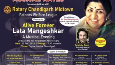 स्वर कोकिला लता मंगेशकर की पहली पुण्यतिथि पर संगीतमय संध्या 5 फरवरी को टैगोर थियेटर मेंकार्यक्रम में बॉलीवुड एक्टर रंजीत होंगे सेलिब्रेटी गेस्ट February 3, 2023February 3, 2023hindiragazone रागा न्यूज़, चंड़ीगढ़।भारत रत्न स्वर कोकिला लता मंगेशकर की पहली पुण्यतिथि के अवसर पर उन्हें समर्पित एक म्यूजिक इवनिंग ‘अलाइव फॉरएवर लता मंगेशकर’ [...]