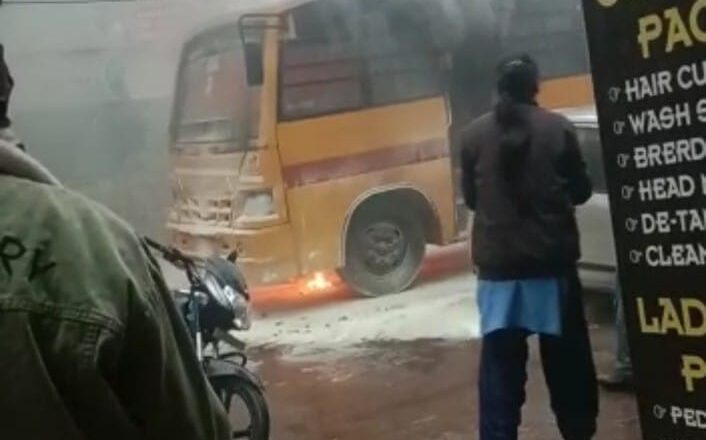 ने आग पर काबू पा लिया। वहीं बस में आग की सूचना पाते ही स्कूल की प्रिंसिपल सिस्टर आरती मौके पर पहुंची।