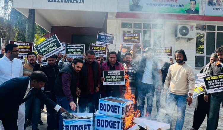 रागा न्यूज़,चंडीगढ़ यूथ कांग्रेस चंड़ीगढ़ ने शुक्रवार को बजट पर अपना विरोध प्रकट करने के लिए कांग्रेस भवन के बाहर बजट पेटियों को जलाया।युथ कांग्रेस चंड़ीगढ़ के अध्यक्ष मनोज लुबाना ने देश में बढ़ती बेरोजगारी दर को लेकर सरकार पर निशाना साधा और कहा कि केंद्रीय बजट 2023-24 गरीबों की चिंताओं को दूर करने में विफल रहा है।