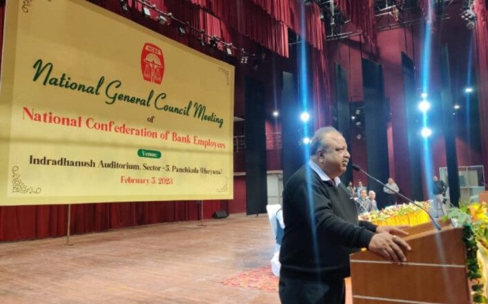 नेशनल कन्फेडरेशन ऑफ बैंक एम्पलाइज (एनसीबीई) की आमसभा की बैठक आज इंद्रधनुष ऑडिटोरियम, सेक्टर 5, पंचकूला में आयोजित की गई,