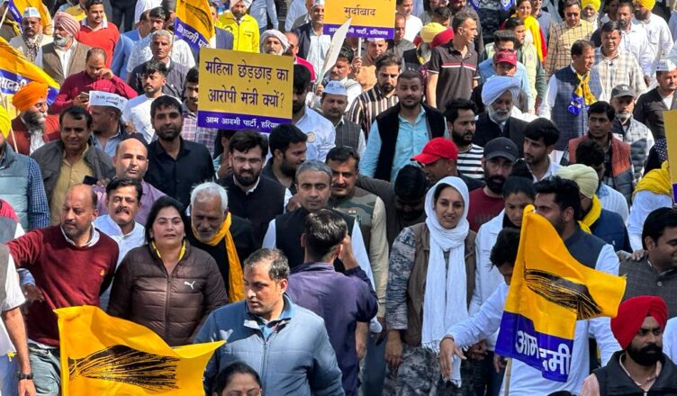 आम आदमी पार्टी के हजारों कार्यकर्ताओं ने मंत्री संदीप सिंह को बर्खास्त करने की मांग को लेकर बुधवार को सेक्टर-5 पंचकूला के रैली ग्राउंड से वरिष्ठ नेता अनुराग ढांडा के नेतृत्व में चंडीगढ़ के लिए कूच किया। हजारों की संख्या में प्रदेश के कोने कोने से पहुंचे कार्यकर्ताओं की भीड़ से पंचकूला से चंडीगढ़ के रास्ते जाम हो गए। चंडीगढ़ में दाखिल होने से पहले ही पुलिस से आप कार्यकर्ताओं का टकराव हो गया। आम आदमी पार्टी की महिला कार्यकर्ताओं के साथ पुरुष पुलिस कर्मियों ने धक्का मुक्की भी की। आम आदमी पार्टी के वरिष्ठ नेता अनुराग ढांडा ने कहा कि मुख्यमंत्री खट्टर के आंखों पर बंधी काली पट्टी को खोल कर ही आम आदमी पार्टी के कार्यकर्ता दम लेंगे। उन्होंने बताया कि मंत्री संदीप सिंह की बर्खास्तगी की लेकर राज्यपाल की ज्ञापन सौंपेंगे।