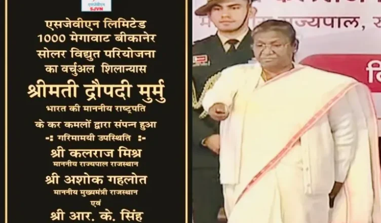 राष्ट्रपति द्रौपदी मुर्मू ने आज राजस्थान के जयपुर में एसजेवीएन की 1000 मेगावाट “बीकानेर सौर ऊर्जा परियोजना” की आधारशिला रखी।इस ऐतिहासिक अवसर पर राजस्थान के महामहिम राज्यपाल कलराज मिश्र और राजस्थान के मुख्यमंत्री अशोक गहलोत की गरिमामयी उपस्थिति रही। यह परियोजना एसजेवीएन लिमिटेड द्वारा अपनी पूर्ण स्वामित्व वाली अधीनस्थ कंपनी एसजेवीएन ग्रीन एनर्जी लिमिटेड (एसजीईएल) के माध्यम से निष्पादित की जा रही है। एसजेवीएन के अध्यक्ष एवं प्रबंध निदेशक नन्द लाल शर्मा के अनुसार यह परियोजना राजस्थान के बीकानेर जिले के बांदेरवाला गाँव के समीप 5000 एकड़ एकमुश्त खरीदी गई भूमि पर विकसित की जा रही है । जो देश के सर्वाधिक सूर्य उपलब्धता क्षेत्रों में से एक है। परियोजना की निष्पादन लागत 5492 करोड़ रुपए है और इस परियोजना के लिए 44.72 लाख रुपए प्रति मेगावाट की वायबिलिटी गैप फंडिंग सहायता इरेडा द्वारा प्रदान की जा रही है। शर्मा ने बताया कि यह परियोजना क्रमशः लगभग 150-200 और 800-1000 व्यक्तियों के लिए प्रत्यक्ष और अप्रत्यक्ष रोजगार सृजित करेगी । यह स्थानीय अर्थव्यवस्था को प्रोत्साहित करने, हरित रोजगार सृजित करने और आस-पास के क्षेत्रों के समग्र विकास में मददगार होगी।एसजेवीएन ने प्रतिस्पर्धी बोली के माध्यम से केंद्रीय सार्वजनिक क्षेत्र उपक्रम योजना चरण-II, ट्रेंच-III (सरकारी उत्पादक योजना) के तहत यह 1000 मेगावाट क्षमता की बीकानेर सौर ऊर्जा परियोजना हासिल की है। परियोजना द्वारा उत्पादित विद्युत स्व-उपयोग या सरकार/सरकारी संस्थाओं द्वारा प्रत्यक्ष या वितरण कंपनियों (डिस्कॉम) के माध्यम से उपयोग के लिए होगी।परियोजना की कमीशनिंग मार्च 2024 तक प्रस्तावित है। इस परियोजना की कमीशनिंग के पश्चात प्रथम वर्ष में 2454.55 मिलियन यूनिट का विद्युत उत्पादन होगा और 25 वर्षों की अवधि में लगभग 56838 मि.यू. संचयी विद्युत उत्पादन होगा। इसका अधिकतम उपयोग शुल्क 2.57 रुपए प्रति यूनिट तय किया गया है, जिससे उपभोक्ताओं को किफायती विद्युत प्रदान करने में सहायता मिलेगी।शर्मा ने बताया कि यह बहुत ही गर्व की बात है कि एसजेवीएन की सबसे बड़ी सौर परियोजना की आधारशिला भारत के माननीय राष्ट्रपति द्वारा रखी गई और इस परियोजना की कमीशनिंग से भारत सरकार के वर्ष 2030 तक 500 गीगावाट के नवीकरणीय ऊर्जा लक्ष्य को प्राप्त करने में सहायता मिलेगी। घरेलू स्तर पर निर्मित सौर फोटोवोल्टिक सेल और मॉड्यूल का उपयोग मेक इन इंडिया अभियान को बढ़ावा देगा। ग्रिड में मूल्यवान नवीकरणीय ऊर्जा जोड़ने के अलावा, परियोजना से उत्सर्जन में 27,85,077 टन कार्बन की भी कमी आएगी।एसजेवीएन, भारत सरकार के विद्युत मंत्रालय के अंतर्गत एक प्रमुख पावर सीपीएसई के पास लगभग 45000 मेगावाट का कुल परियोजना पोर्