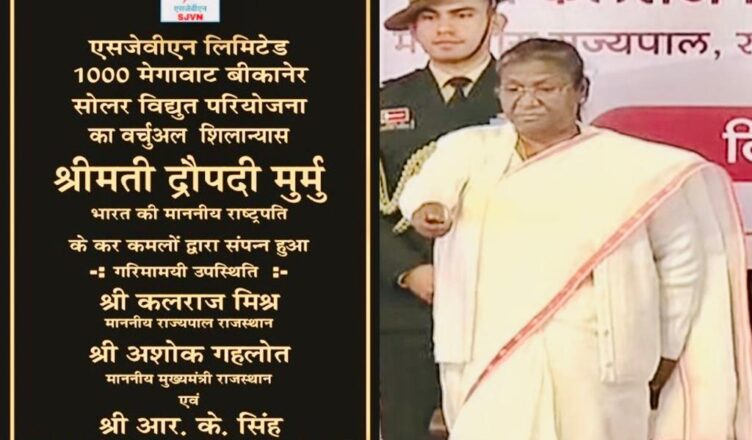 राष्ट्रपति द्रौपदी मुर्मू ने बीकानेर सौर ऊर्जा परियोजना की जयपुर में एसजेवीएन रखी आधारशिला*