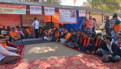 भूख हड़ताल पर बैठे श्री हिंदू तख्त के राष्ट्रीय प्रवक्ता अशोक तिवारी को राष्ट्रीय बजरंग दल पंचकूला ने दिया समर्थन